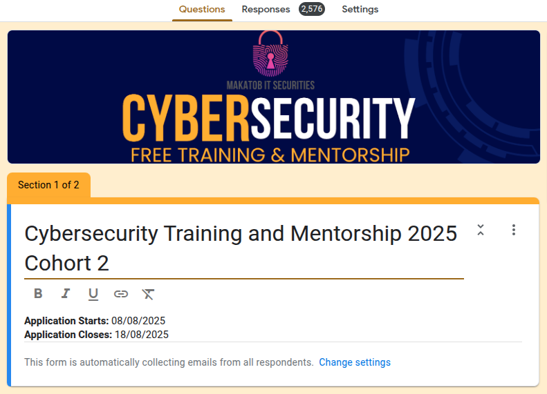 Training officially begins on 1st September 2025 with a mega orientation session to kick off this exciting journey into cybersecurity.