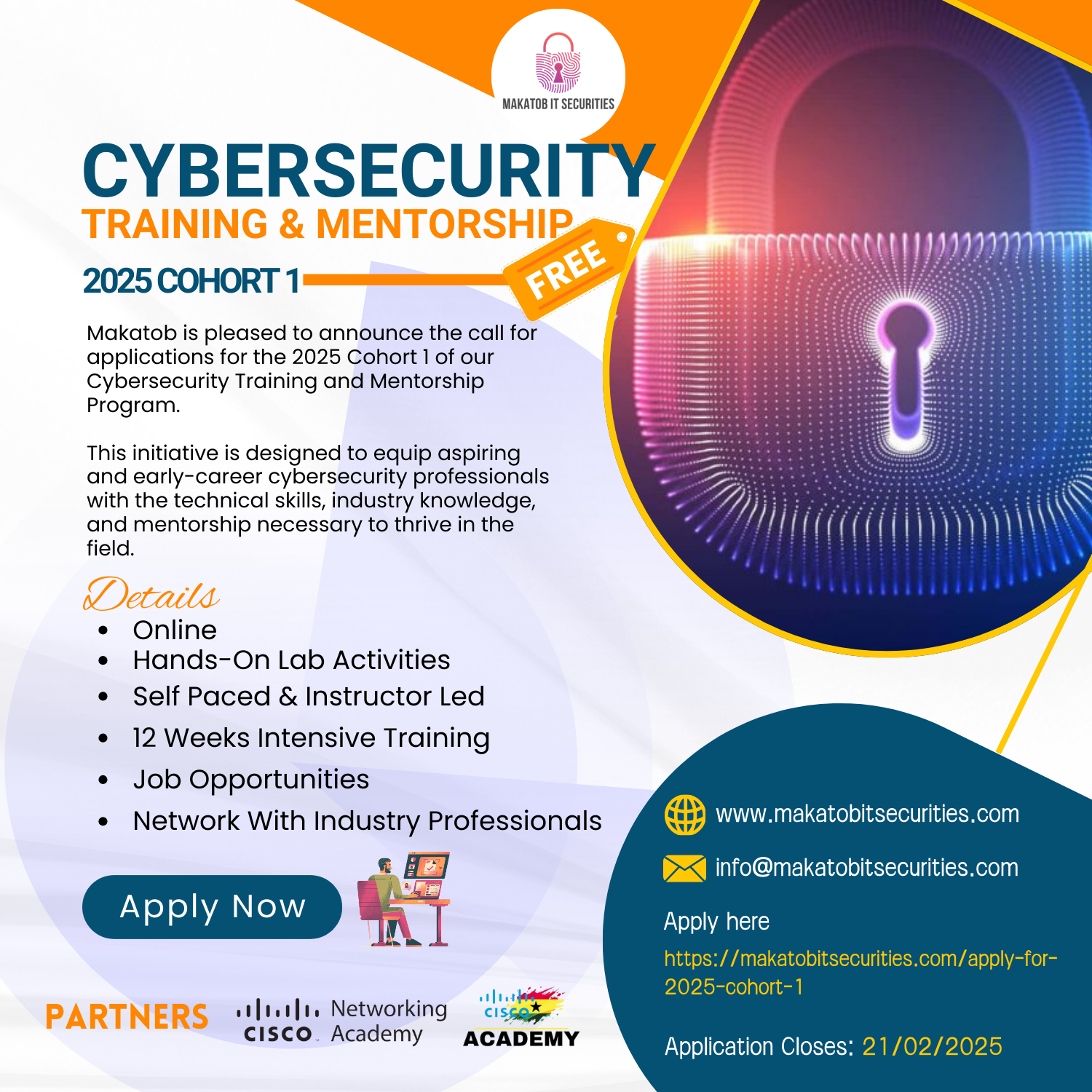 Makatob is pleased to announce the call for applications for the 2025 cohort 1 of its Cybersecurity Training and Mentorship Program. This initiative is designed to equip aspiring and early-career cybersecurity professionals with the technical skills, industry knowledge, and mentorship necessary to thrive in the field.